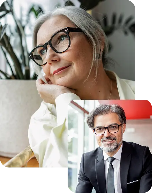 As lentes bifocais da Precisa são freeform e têm uma película invisível com leve progressão. Isto garante uma melhor estética e um melhor campo de visão porque minimiza o salto de imagem de longe para perto.